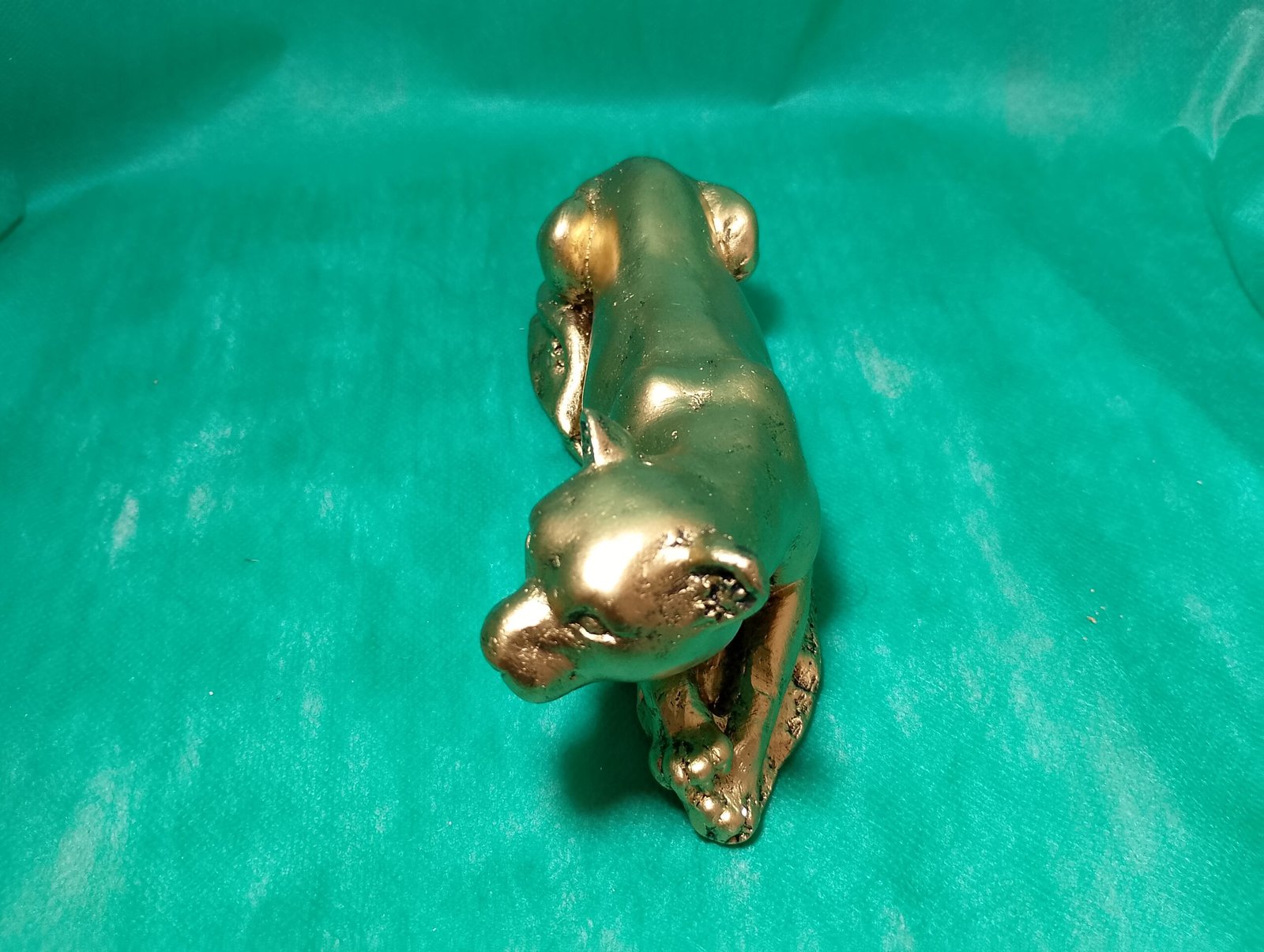 Com um acabamento meticuloso, a estátua em gesso de leoa dourado apresenta detalhes impressionantes que capturam a majestade e graciosidade do animal. A pintura dourada realça os traços e confere um brilho luxuoso.